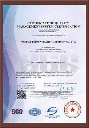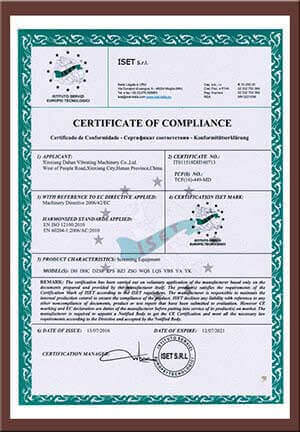 大漢螺旋輸送機設備及振動篩設備先后通過了ISO質量體系認證和歐盟CE認證
