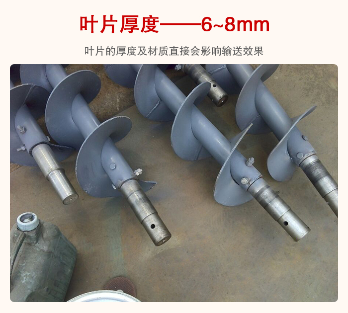 管型螺旋輸送機(jī)是依靠螺旋葉片的推力來(lái)實(shí)現(xiàn)對(duì)物料的輸送機(jī)的,所以葉片的厚度及材質(zhì)直接會(huì)影響輸送效果,葉片厚度一般在6~8mm左右,也可以根據(jù)物料的耐磨程度來(lái)加厚,這些直接與設(shè)備的使用壽命掛鉤的,所以用戶在選型時(shí)要特別注意這一點(diǎn)。