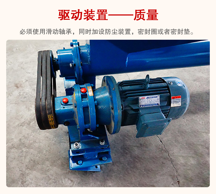管型螺旋輸送機(jī)必須使用滑動(dòng)軸承,同時(shí)加設(shè)防塵裝置,密封圈或者密封墊,這樣不會(huì)導(dǎo)致