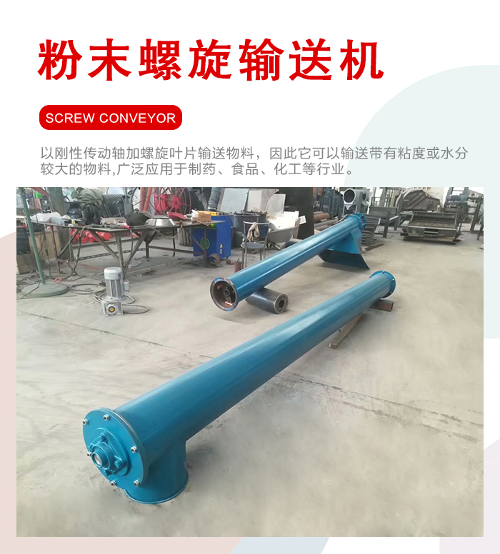 簡介:粉末螺旋輸送機是以剛性傳動軸加螺旋葉片輸送物料,因此它可以輸送帶有粘度或水分較大的物料。