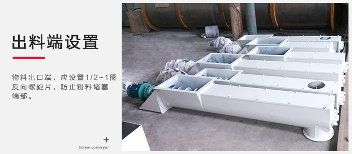 4)LS、GX型螺旋輸送機物料出口端,應設(shè)置1/2~1圈反向螺旋片,防止粉料堵塞端部。
