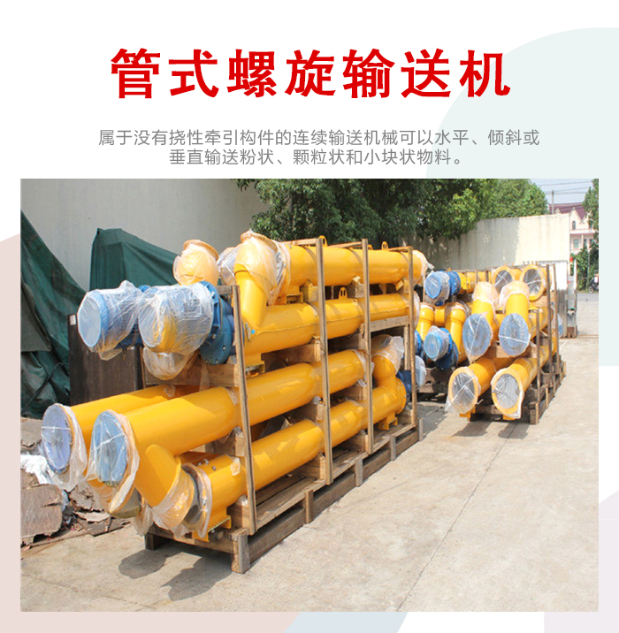 簡介:管式輸送機是一種電機帶動螺旋回轉,進而推移物料實現輸送目的的輸送設備